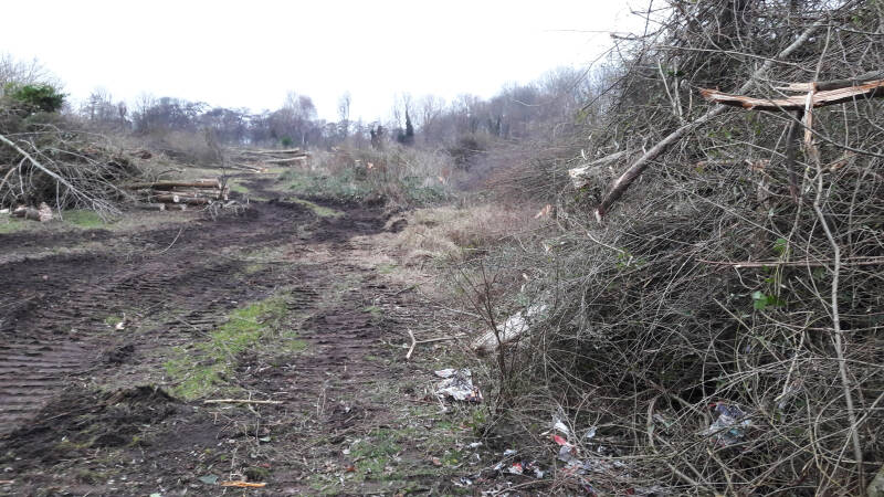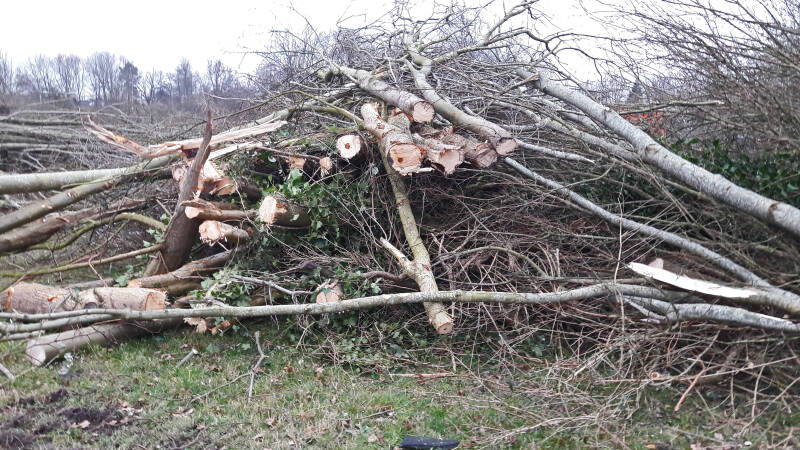Een uiterst trieste vertoning. Ondertussen (voorjaar 2022) zijn alle gekapte bomen afgevoerd en waarschijnlijk terecht gekomen in een biomassa installatie. Wat rest is een braakliggend stuk terrein, dat vanaf april 2022 afgegraven zal worden. Voor de goede orde: het gaat hier nog steeds om een stuk terrein, met als bestemmingsplan: OPENBAAR GROEN !