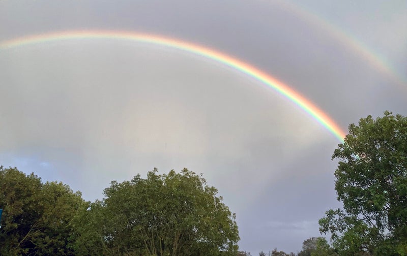 foto: Justus van Loon, 16 okt. 2023 (Het Blekersveld Park met de resterende bomen en ... een fraaie regenboog)